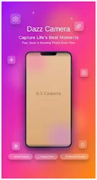 0.5 Camera Dazz Cam è un'app per fotocamera Android che rivoluziona il modo di scattare foto, adatta sia per appassionati di fotografia che per utenti occasionali. Grazie a un'interfaccia intuitiva e a potenti strumenti, consente di catturare immagini e video di alta qualità in modo semplice e veloce. Le funzionalità includono controlli avanzati per esposizione e messa a fuoco, accesso istantaneo alla galleria e strumenti di editing per migliorare le foto con filtri ed effetti.